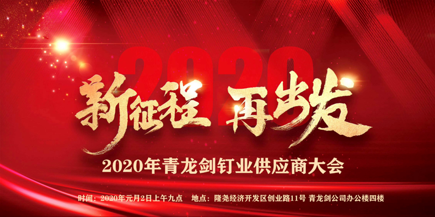 2020年1月2日上午9點,青龍劍釘業(yè)2020年度供應(yīng)商大會在青龍劍經(jīng)濟開發(fā)區(qū)公司盛大召開,本次大會以“新征程,再出發(fā)”為主題,青龍劍董事長馬志華、總經(jīng)理馬群澤及各部門負責人與隆堯經(jīng)濟開發(fā)區(qū)領(lǐng)導(dǎo)、公司原輔料供應(yīng)商共計160余位嘉賓共同出席了此次盛會。