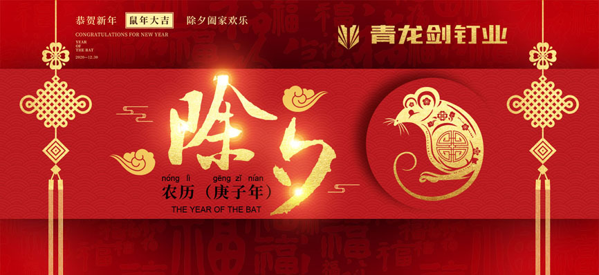 歲序常易,華章日新。當(dāng)時(shí)光穿越年輪,邁向2020新春佳節(jié),中華大地因納其盛世靈氣而芳澤毓秀,在這個(gè)充滿激情與期望的時(shí)刻,青龍劍釘業(yè)全體人員向所有關(guān)心關(guān)愛(ài)青龍劍公司發(fā)展的社會(huì)各界同仁、全國(guó)的經(jīng)銷商和用戶朋友們致以親切的節(jié)日問(wèn)候和誠(chéng)摯的新春祝福!