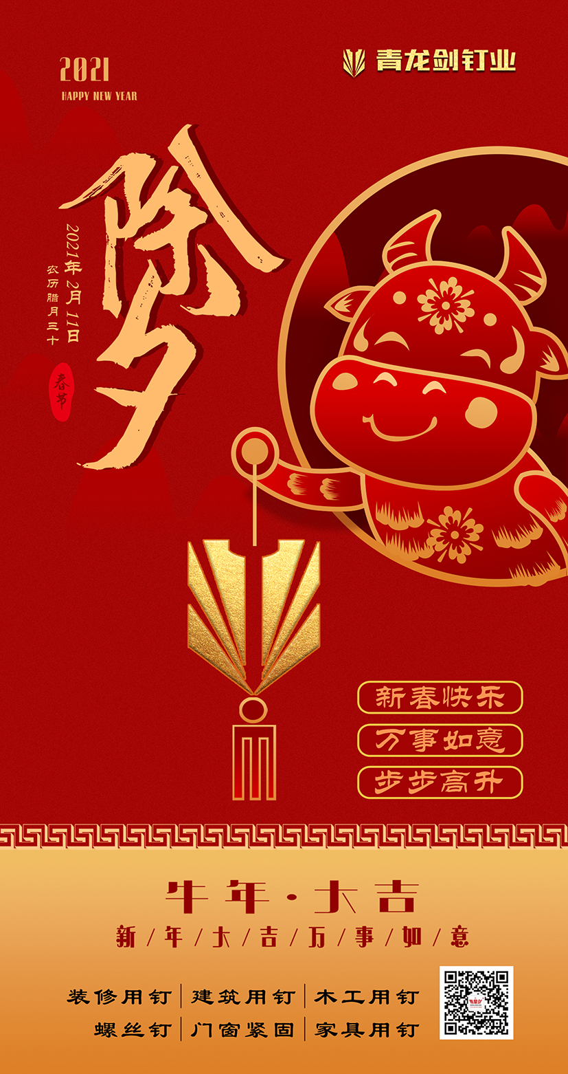 長(zhǎng)河悠遠(yuǎn),天地常新。2021年新春的曙光即將開(kāi)啟時(shí)間之門(mén),在這辭舊迎新的美好時(shí)刻,我們向關(guān)心和支持青龍劍公司發(fā)展的社會(huì)各界同仁、全國(guó)的經(jīng)銷(xiāo)商、供應(yīng)商和用戶(hù)朋友們致以親切的節(jié)日問(wèn)候和誠(chéng)摯的新春祝福!向奮斗在一線(xiàn)工作崗位、勤勉敬業(yè)的青龍劍員工致敬!