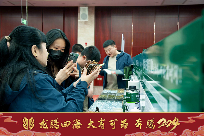 會議間隙,經銷商參觀公司產品展區(qū),對公司推出的新產品頗感興趣,并咨詢、拍照。