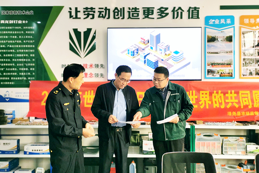 今年10月14日是第54屆世界標(biāo)準(zhǔn)日,主題為“美好世界的共同愿景”。為進(jìn)一步推廣標(biāo)準(zhǔn)化理念,提高標(biāo)準(zhǔn)化意識(shí),提升標(biāo)準(zhǔn)化總體水平,深入推進(jìn)標(biāo)準(zhǔn)化戰(zhàn)略,10月12日,隆堯縣市場(chǎng)監(jiān)督管理局副局長(zhǎng)張彥國(guó)給青龍劍公司送來釘類產(chǎn)品國(guó)家標(biāo)準(zhǔn)。