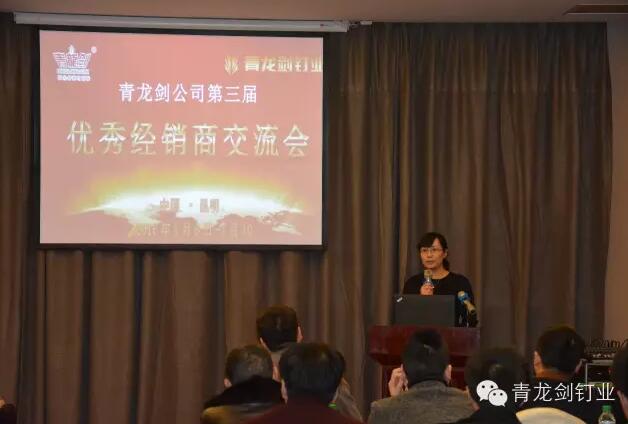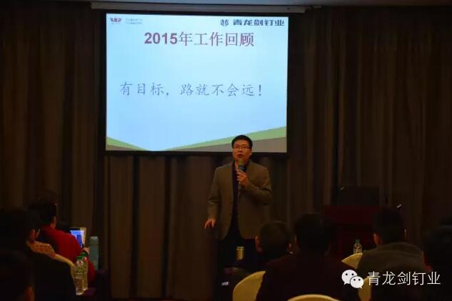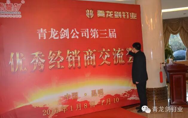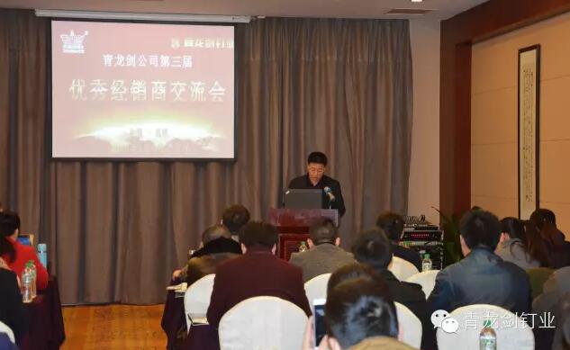 公司董事長(zhǎng)馬志華對(duì)全國(guó)經(jīng)銷商的到來(lái)表示誠(chéng)摯的感謝。——“感謝各位經(jīng)銷商來(lái)參加2016年度青龍劍公司第三屆優(yōu)秀經(jīng)銷商交流會(huì),歡聚一堂共同探討青龍劍釘業(yè)發(fā)展大計(jì)”。
