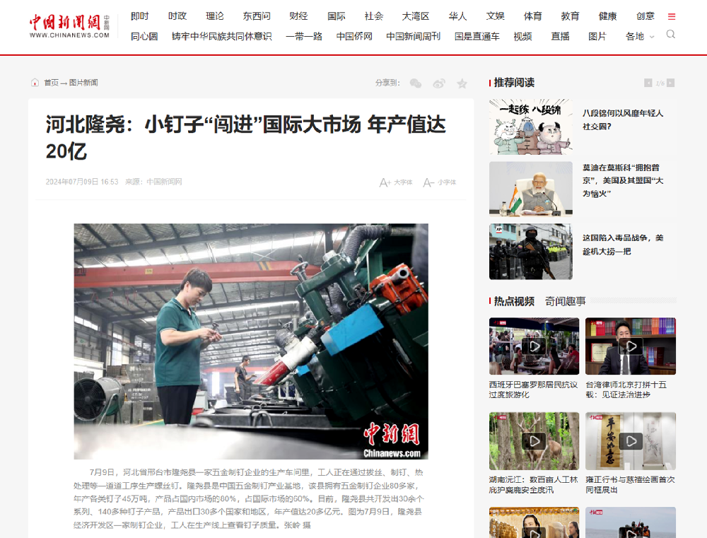 近日,中國(guó)新聞網(wǎng)記者走進(jìn)河北隆堯青龍劍釘業(yè)有限公司,對(duì)制釘車間的生產(chǎn)工序及車間環(huán)境進(jìn)行了解和拍攝。7月9日下午,青龍劍釘業(yè)榮登中國(guó)新聞網(wǎng)。青龍劍釘業(yè)將不斷探索、研發(fā)產(chǎn)品,通過(guò)技術(shù)升級(jí)、產(chǎn)品創(chuàng)新,為社會(huì)提供更高效、更安全緊固產(chǎn)品,提供更全面的基材連接緊固系統(tǒng)解決方案,樹立行業(yè)標(biāo)桿,助力國(guó)家建設(shè)![詳情] 2024-07-12 09:40:06